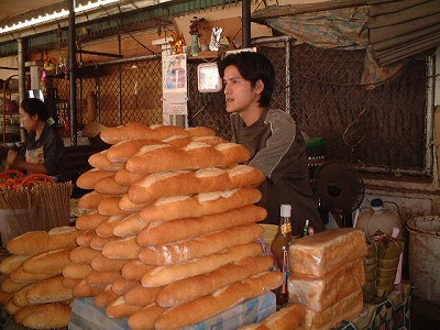 ・・・ってことで、ラオスの首都・ビエンチャンですwフランスパンが山積み。