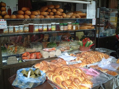 ←道端でもこんなカンジで売られています。かわいいパン屋台です。