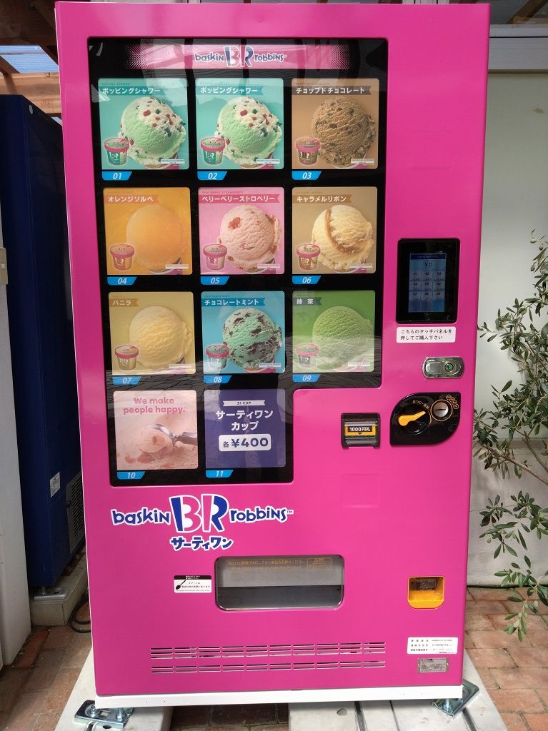 少し前、オリーブ園にサーティワンアイスの自販機が設置されたと小耳に挟んで...