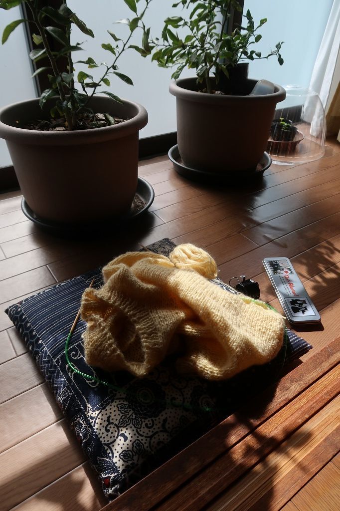 正確には輪針の編み方ではないけど、つまり我流だけど、もうすぐ完成します。