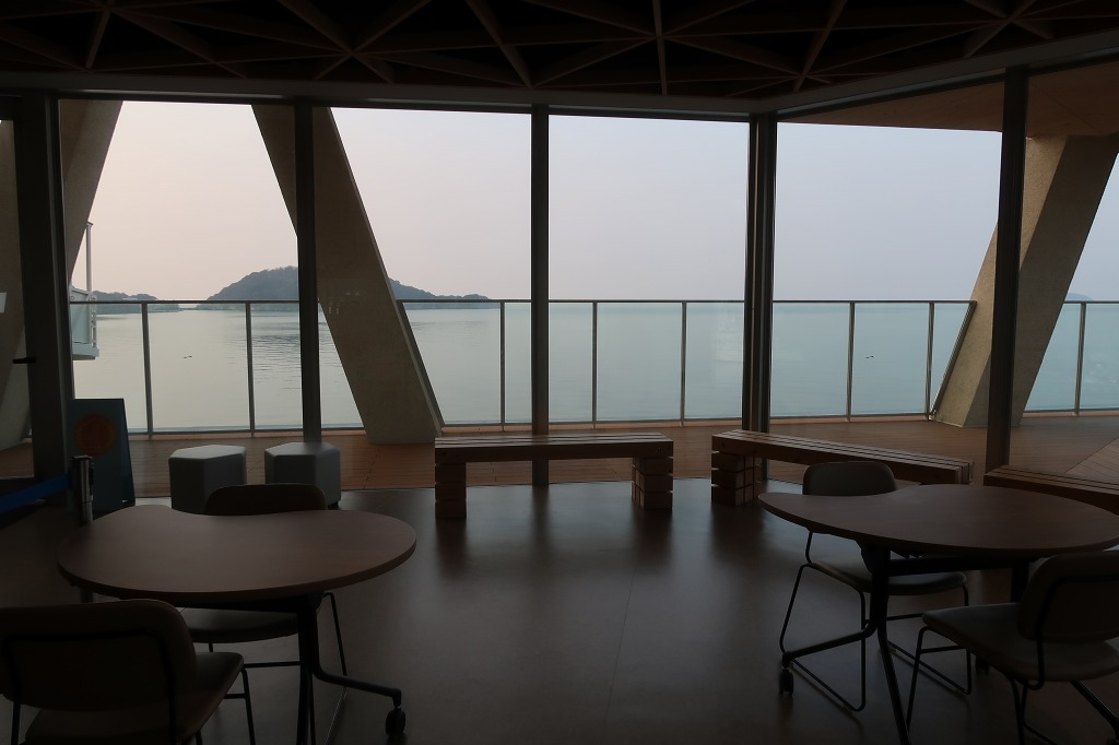 シンプルなデザイン、建築が美しく、フェリーの待合所の他、移住支援センター、ワーキングスペース、カフェ、ショップなどがある複合施設です。
