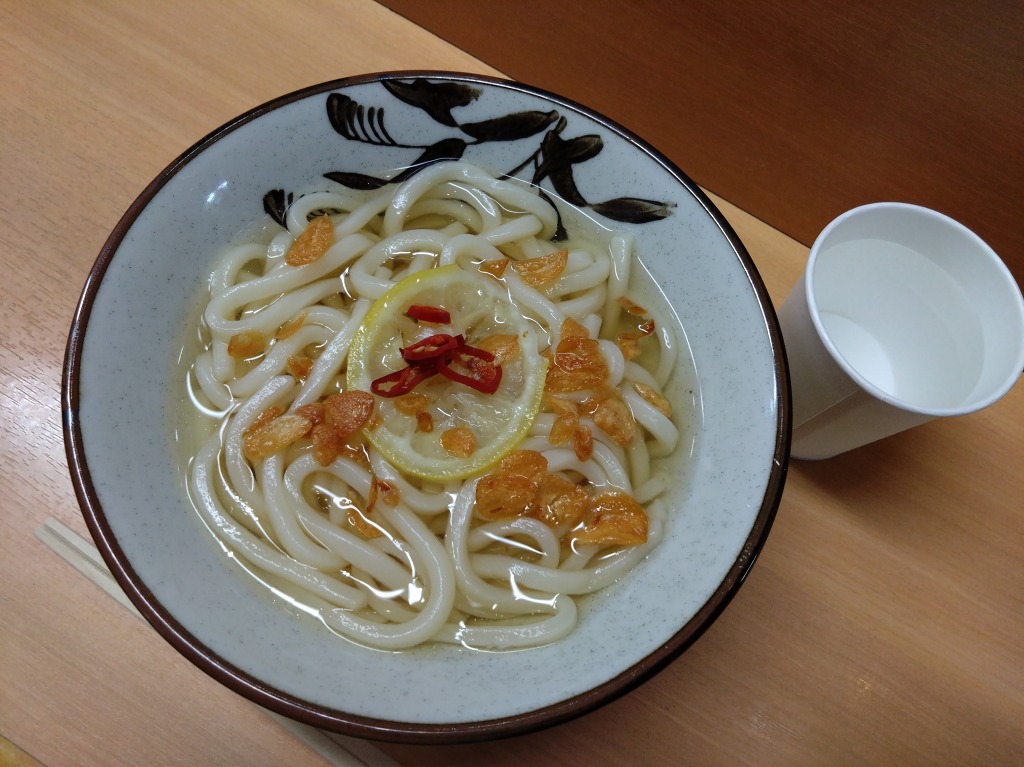 7:15、予定通り出航。今回自由席だったので、場所を確保した後、お待ちかね“うどんコーナー”へ。(^ω^)