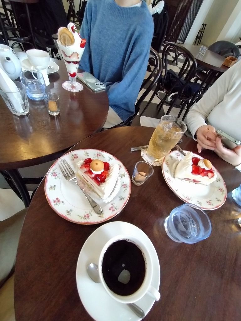 長女はおっきなストロベリーパフェ、次女と私はいちごのケーキを注文。このケーキが甘過ぎずとっても美味だったんです~◎