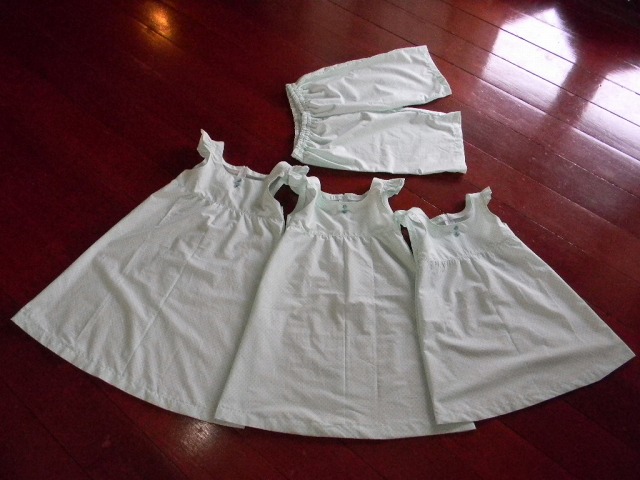 憧れの3姉妹お揃いワンピース...+α お兄ちゃんの短パンで、4人きょうだい(兄弟姉妹)お揃いのお洋服の出来上がり。